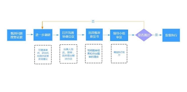 首先,成都高新区明确了甄审机制的工作流程。从甄别问题研究解决方案到召集联合甄审会议、出具甄别审查意见书,再到领导小组会议确认行政效力、后续监督执行……每一个环节均有明晰的目标和任务分工。