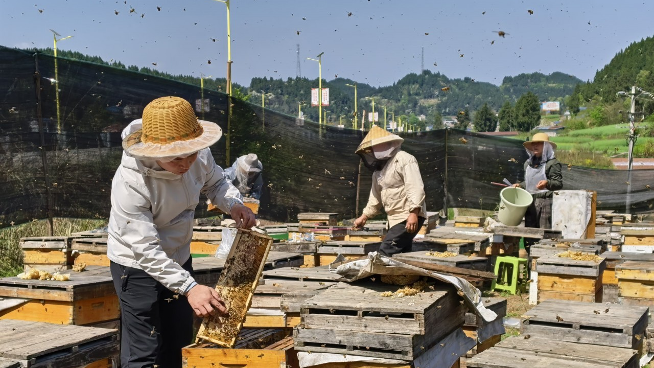 “有花的地方就有奔头,有奔头的日子就是甜的。”说这话时,45岁的杨冬梅停下搓洗衣服的手,目光投向蜂箱旁忙碌的丈夫。杨冬梅在搓洗衣物。陈继正抽出一块巢脾,上面爬满密密麻麻的意大利蜂。金黄的蜜汁从蜂巢渗出,在春日暖阳下泛着琥珀般的光泽。这对来自云南临沧的夫妻,今年把“走蜂追花”的第一站选在了安岳。二十多天前,他们载着150多个蜂箱在此落脚,还要再待一个月,直到下一场花期将他们【详细】