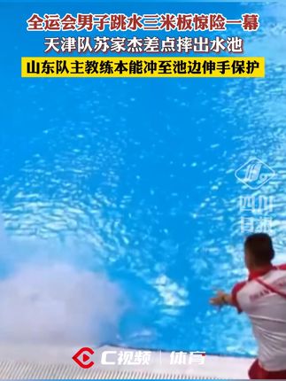 惊险一幕!全运会男子跳水三米板半决赛,天津队苏家杰差点摔出水池,山东队主教练本能冲至池边伸手保护。【详细】
