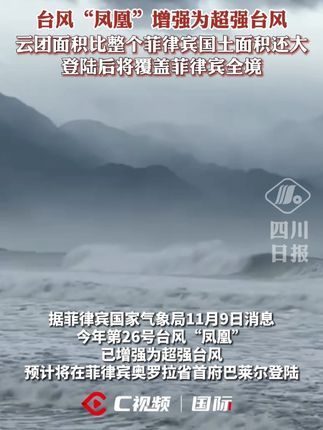台风“凤凰”增强为超强台风,云团面积比整个菲律宾国土面积还大,登陆后将覆盖菲律宾全境。【详细】