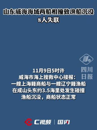 C视频丨山东威海海域两船相撞致渔船沉没 8人失联
