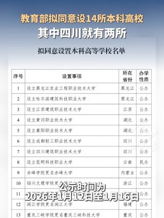 C视频丨教育部拟同意设14所本科高校,其中四川就有2所