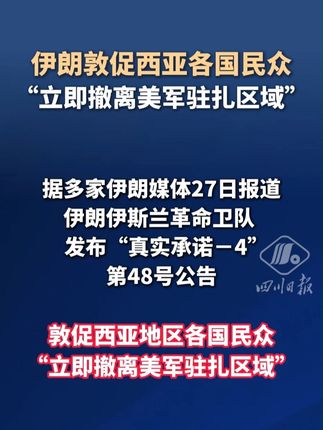 伊朗敦促西亚各国民众“立即撤离美军驻扎区域”【详细】