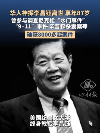"华人神探"、著名美籍华裔刑事鉴识专家、美国纽黑文大学终身教授李昌钰在内华达州家中因疾病去世,享年87岁。【详细】