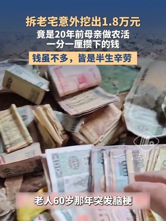 C视频丨拆老宅意外挖出1.8万元,竟是20年前母亲做农活一分一厘攒下的钱