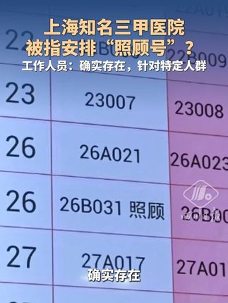 上海知名三甲医院被指安排“照顾号”?工作人员:确实存在,针对特定人群。【详细】