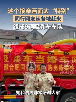 “掏粪男孩”结婚,9辆吸粪车组车队迎亲,新娘回应:很新奇,她也非常感谢大家【详细】