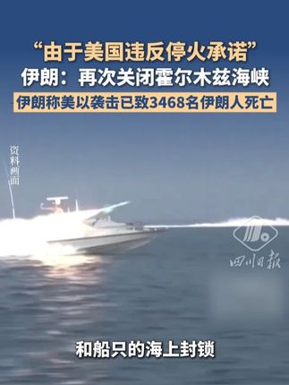 伊朗称再次关闭霍尔木兹海峡:因美国违反停火承诺,未解除对伊朗港口和船只的海上封锁。【详细】