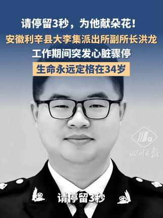 痛别!派出所副所长洪龙工作期间突发心脏骤停,不幸因公牺牲,年仅34岁。【详细】