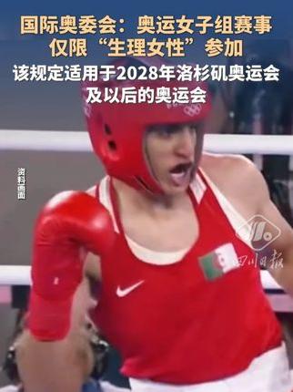 国际奥委会:奥运女子组赛事仅限“生理女性”参加,该规定适用于2028年洛杉矶奥运会及以后的奥运会。【详细】