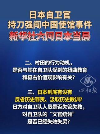 日本自卫官持刀强闯中国使馆事件,新华社六问日本当局。【详细】