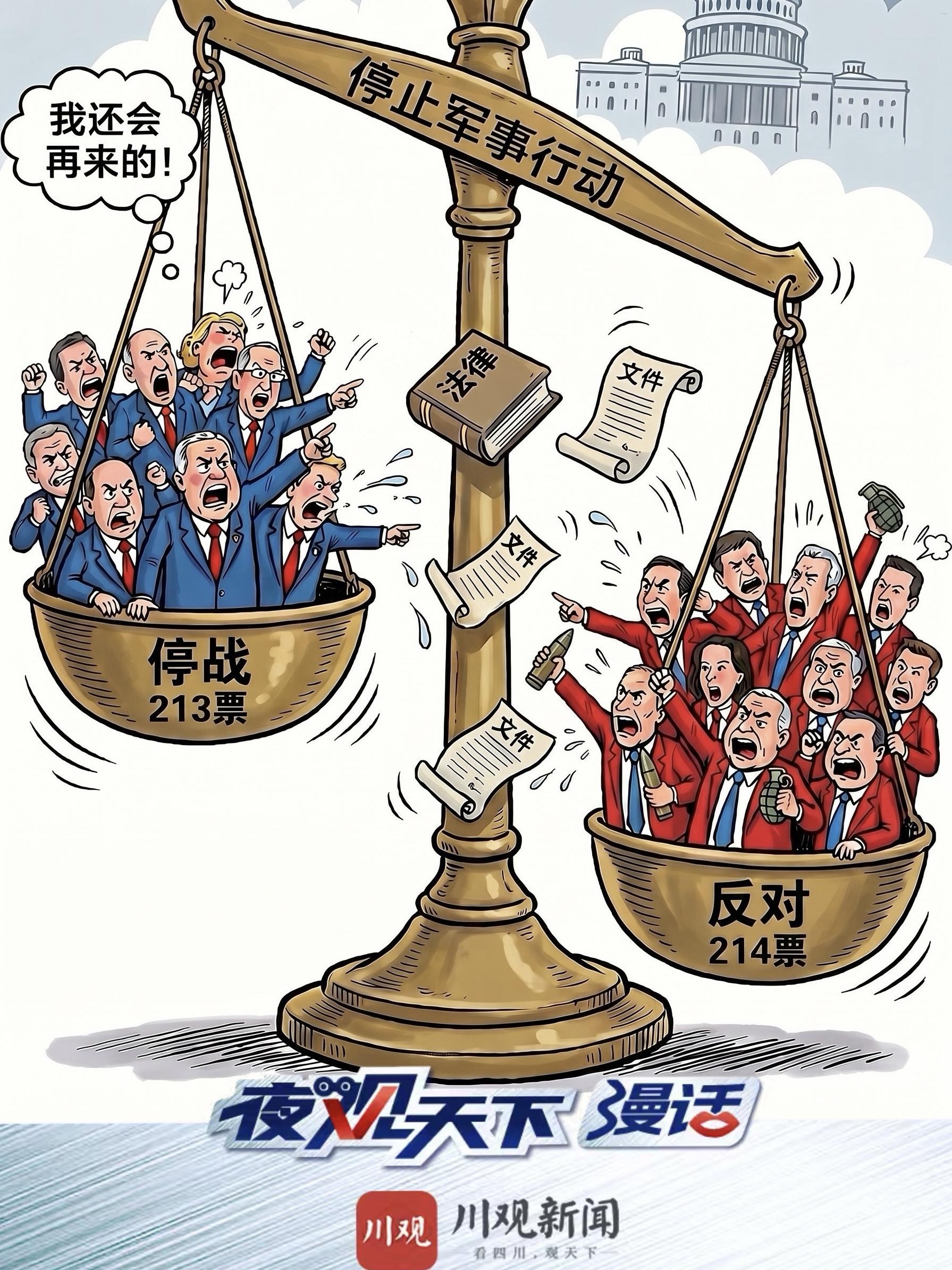 213票赞成、214票反对,“要求特朗普结束军事行动”议案被否决丨夜观天下·漫话