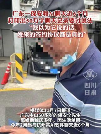广东保安和AI聊天近6个月,打印出50万字聊天记录要讨说法:我以为它说的话、发来的签约协议都是真的……【详细】