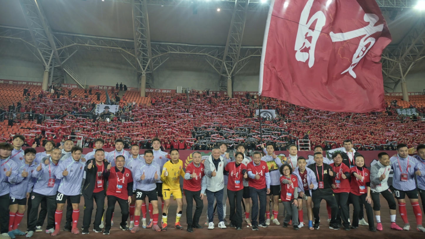 C视频|排面不小 自贡灯城燊龙队主场庆祝提前出线