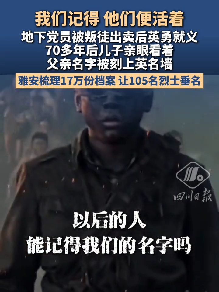用3年梳理17万份档案,让105名烈士垂名!雅安人说,他们一个都不能忘