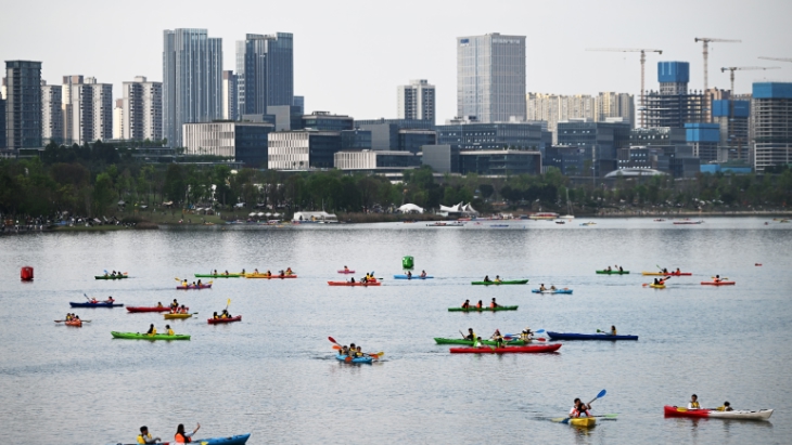 C视觉丨四川成都:放风筝、划皮艇、搭帐篷 市民近郊游乐享假日“慢时光”