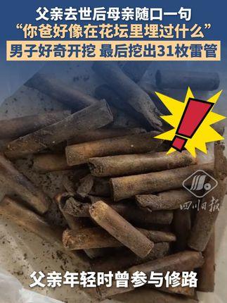 父亲去世后母亲随口一句“你爸好像在花坛里埋过什么”,男子好奇开挖最后竟挖出31枚雷管。【详细】