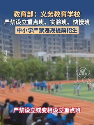 教育部:义务教育学校严禁设立重点班、实验班、快慢班,中小学严禁违规提前招生。【详细】