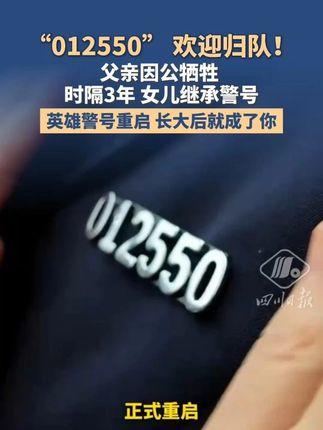 012550,欢迎归队!公安系统二级英模魏和友警号重启,由他的女儿、新警魏佳琪继承。【详细】