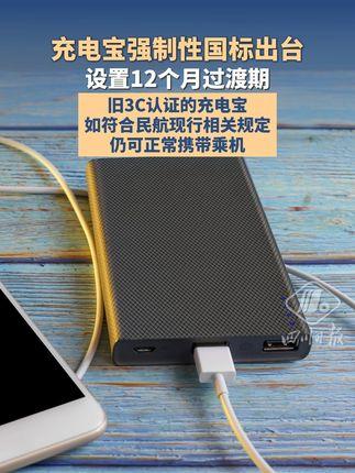 充电宝强制性国标出台,设置12个月过渡期,旅客此前已购买的通过旧3C认证的充电宝,只要符合民航现行相关规定,仍可正常携带乘机。【详细】