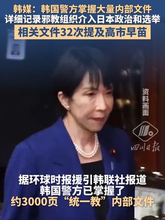 C视频丨韩媒:韩国邪教介入日本政治和选举,内部文件32次提及高市早苗