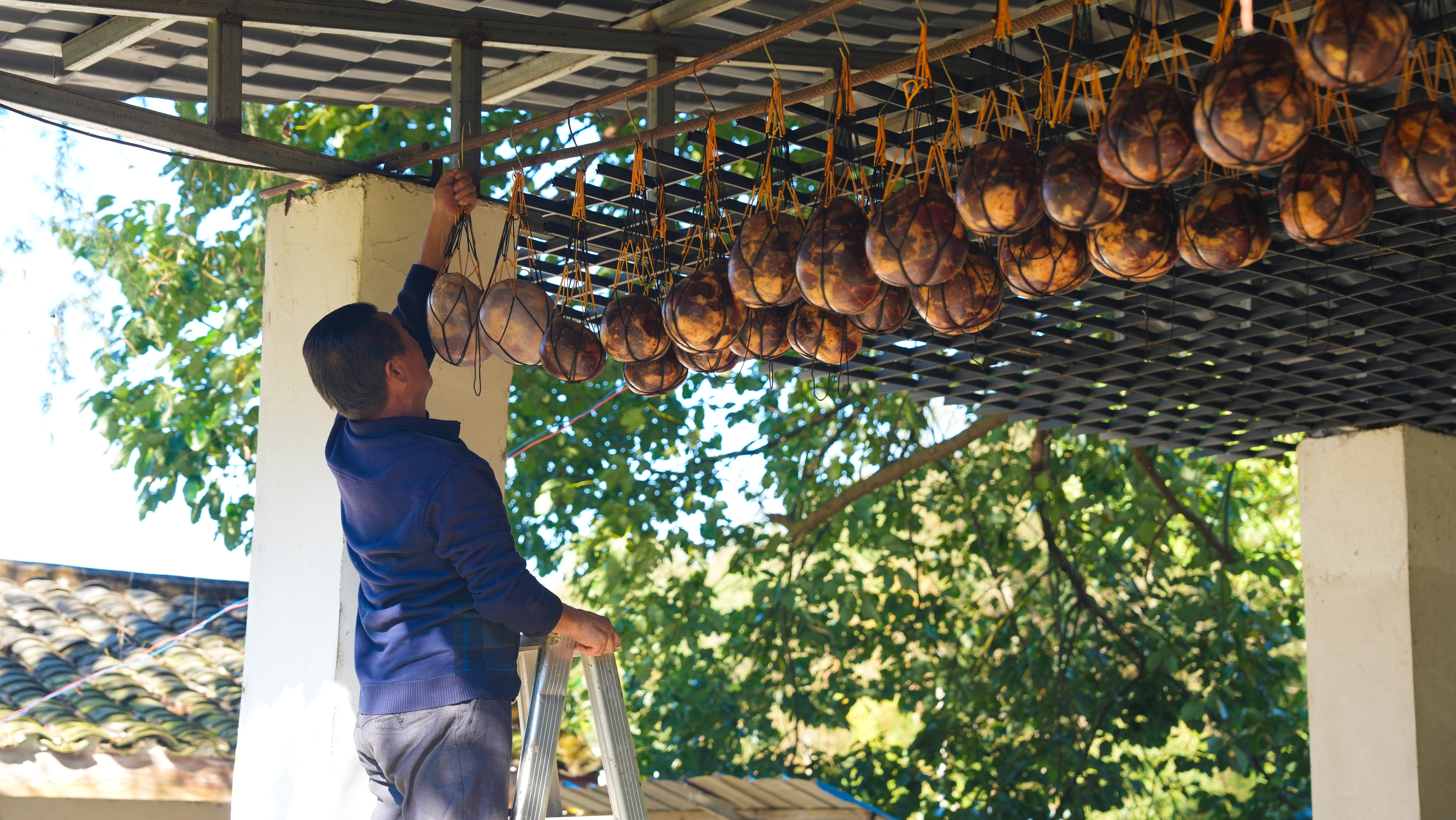 34秒解锁螺髻山彝族包腊的匠心传承冬日的螺髻山,晨雾还未散尽,阳光已如碎金般穿透云层,洒进半山腰的余家大院。院坝里,女主人余燕正系着围裙忙活开了,屋檐下悬挂的腊肉、猪蹄泛着琥珀色油光,与墙角遒劲老树枝上的仙人掌相映,空气中浮动着柴火、香料与新鲜猪肉交织的香气——这里正在制作的,是螺髻山彝族人家代代相传的民俗美食:包腊。“做彝族包腊,选材是第一道关,马虎不得。”屠宰师傅手持【详细】