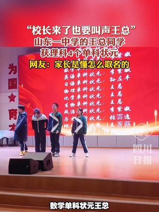 C视频丨山东一中学王总同学获理科4个单科状元,网友:家长是懂怎么取名的