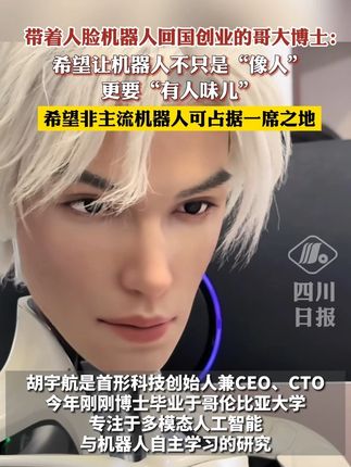 C视频丨带着人脸机器人回国创业的哥大博士胡宇航:让机器人更“有人味儿”