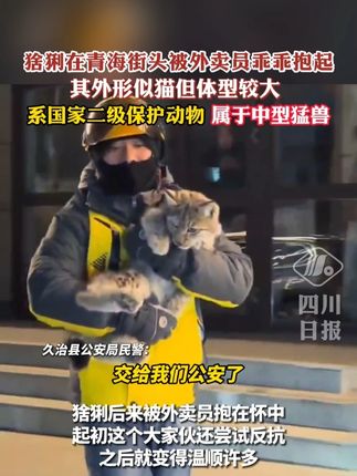 C视频丨国家二级保护动物猞猁被外卖员乖乖抱起,警方称猞猁没有受伤,已交由有关部门进行后续处置