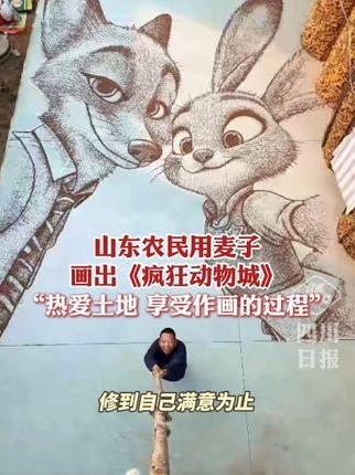 C视频丨山东农民用麦子画出《疯狂动物城》,热爱土地,享受作画的过程