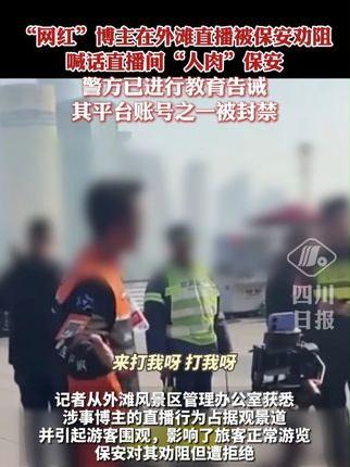 “网红”博主在外滩直播被劝阻,喊话直播间“人肉”保安,后续:警方已进行教育告诫,其平台账号之一被封禁。【详细】