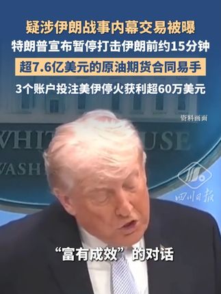 疑似涉伊朗战事内幕交易被曝,特朗普宣布暂停打击伊朗前约15分钟,超7.6亿美元的原油期货合同易手丨C视频