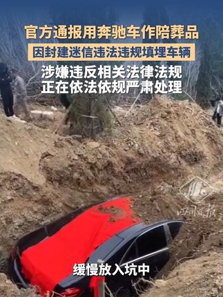 官方通报用奔驰车作陪葬品事件,网传事件当事人金某因封建迷信违法违规填埋车辆丨C视频