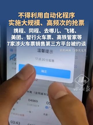 携程、同程、去哪儿、飞猪、美团、智行火车票、高铁管家等7家涉火车票销售第三方平台被约谈丨C视频
