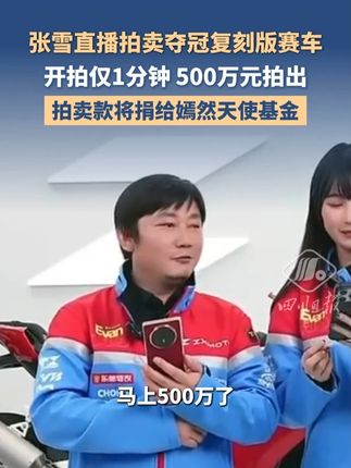 张雪机车夺冠复刻版赛车500万元拍出,拍卖款将捐给嫣然天使基金丨C视频
