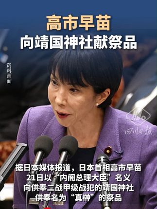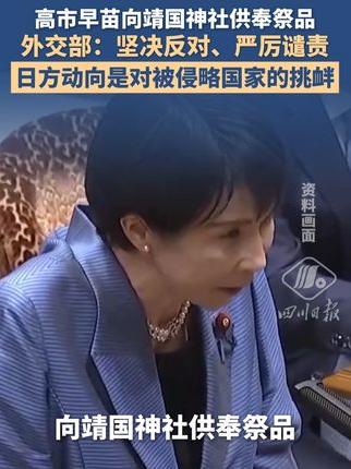 高市早苗向靖国神社供奉祭品,外交部:中方坚决反对、严厉谴责,日方动向是对被侵略国家的挑衅。【详细】