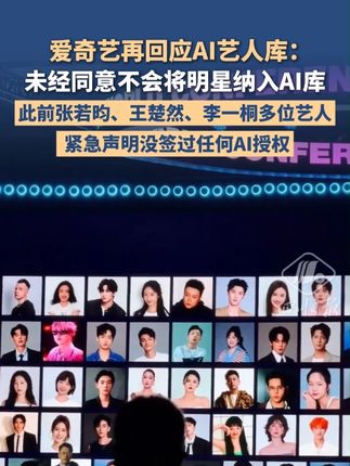 爱奇艺再回应AI艺人库:未经同意不会将明星纳入AI库,此前张若昀、王楚然、李一桐等多位艺人声明没签过任何AI授权丨C视频