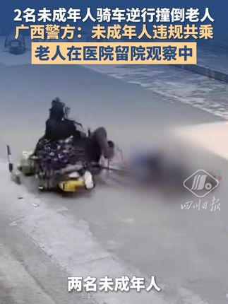 2名未成年人骑车逆行撞倒老人,广西警方通报:未成年人违规共乘,老人在医院留院观察中。【详细】