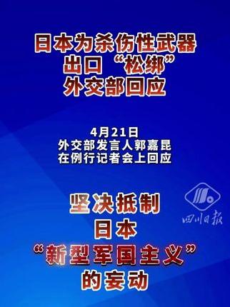 日本为杀伤性武器出口“松绑”,外交部:日本加速“再军事化”是事实和现实,中方将保持高度警惕,坚决抵制日本“新型军国主义”妄动丨C视频