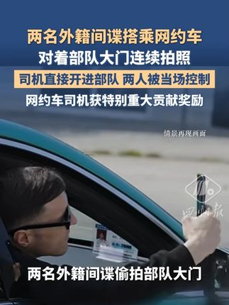 网约车司机智斗两名境外间谍,获特别重大贡献奖励。【详细】