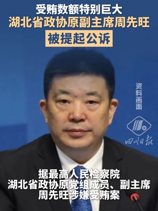 受贿数额特别巨大,湖北省政协原副主席周先旺被提起公诉。【详细】
