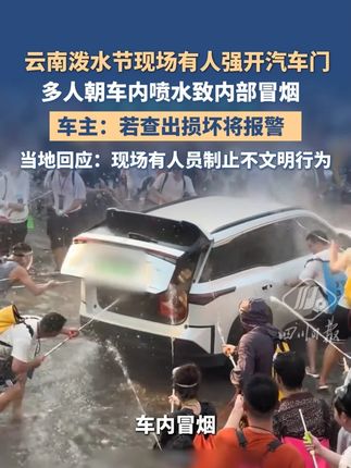云南泼水节现场有人强开汽车门并朝车内喷水,车主:若查出损坏将报警。【详细】