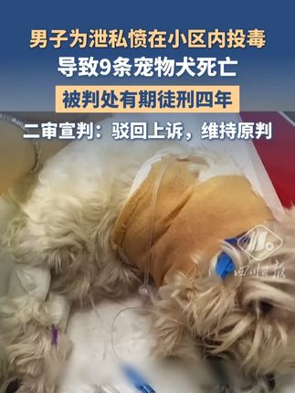 男子在小区内投毒致9条宠物犬死亡,被判处有期徒刑四年,二审宣判:驳回上诉,维持原判丨C视频
