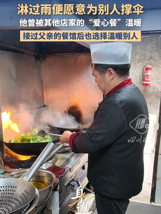 淋过雨便愿意为别人撑伞,他曾被其他店家的“爱心餐”温暖,接过父亲的餐馆后也选择温暖别人。【详细】