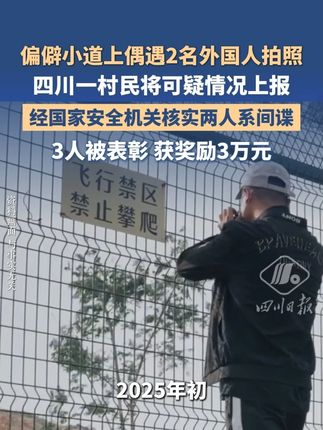 四川3人举报间谍行为被表彰,获奖金3万元。【详细】