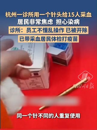 一诊所用一个针头给15人采血,居民担心传染疾病,诊所:已开除涉事员工,并带采血居民体检打疫苗。【详细】