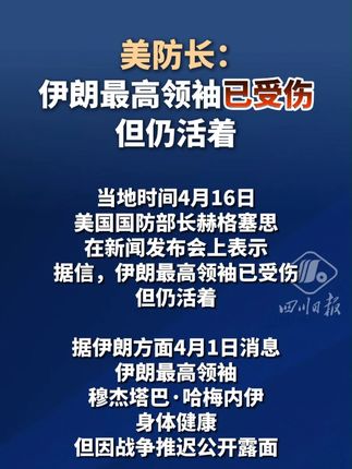 美防长:伊朗最高领袖已受伤,但仍活着。【详细】