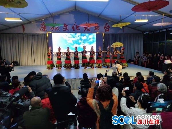 在小镇的活动广场上,40多桌坝坝宴已经铺展就绪,热烈的红布预示着游人辞旧迎新的喜悦。坝坝宴是辞旧迎新的一个重要活动。18时左右,来自全国各地的康养游客、当晚参加演出的演员们,共计400多人,喜笑颜开围坐餐桌前,说着美好的祝福,杯筹交错间共同迎接2020年。