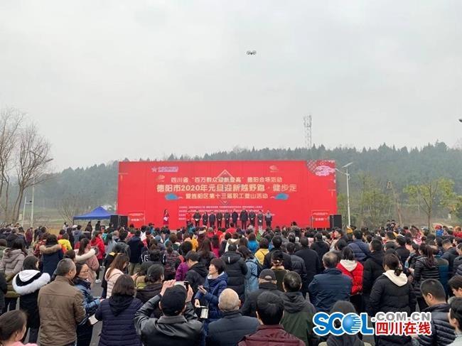 四川在线消息(记者 余如波 德阳观察 古蓉媛 文/图)1月2日上午,新年上班第一天,四川省“百万群众迎新登高”德阳会场德阳市2020年元旦迎新越野跑·健步走暨旌阳区第十三届职工登山活动开跑,千余市民以运动的方式庆祝新一年的到来。