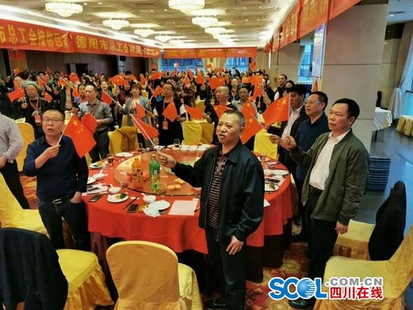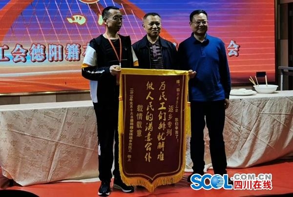 现场,农民工代表向省总工会、德阳市及县区总工会献上了锦旗。